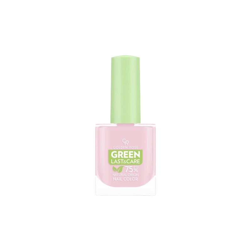 GOLDEN ROSE Green Last&Care est une formule de vernis à ongles végétalien et d'origine naturelle (à base de plantes propres) qui offre de la brillance, de la brillance et une couleur riche en pigments tout en permettant à vos ongles de rester en bonne santé. La formule ne contient aucun ingrédient d'origine animale, avec jusqu'à 75 % d'ingrédients d'origine naturelle et 80 % d'ingrédients bio sources. La formule est composée d'ingrédients végétaux de qualité comme la canne à sucre, le coton, le manioc et le maïs. L'emballage est composé à 20 % de matériaux recyclés post-consommation.