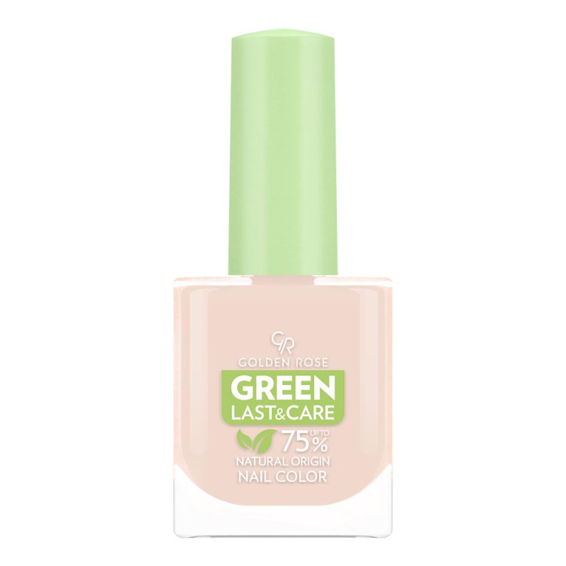 GOLDEN ROSE Green Last&Care est une formule de vernis à ongles végétalien et d'origine naturelle (à base de plantes propres) qui offre de la brillance, de la brillance et une couleur riche en pigments tout en permettant à vos ongles de rester en bonne santé. La formule ne contient aucun ingrédient d'origine animale, avec jusqu'à 75 % d'ingrédients d'origine naturelle et 80 % d'ingrédients bio sources. La formule est composée d'ingrédients végétaux de qualité comme la canne à sucre, le coton, le manioc et le maïs. L'emballage est composé à 20 % de matériaux recyclés post-consommation.