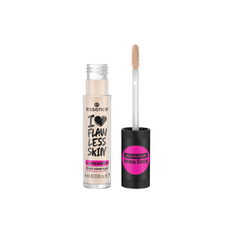 Créez votre look impeccable : le correcteur essence longue durée I LOVE FLAWLESS SKIN offre une couvrante élevée, parfaite pour couvrir les impuretés et les rougeurs. Grâce à l'applicateur intégré, vous pouvez facilement l'appliquer et l'estomper avec vos doigts, une éponge ou un pinceau. La texture légère et douce est agréable sur la peau et offre un fini mat naturel. La formule waterproof de notre correcteur essence I LOVE FLAWLESS SKIN assure une tenue longue durée, peu importe ce que vous faites.