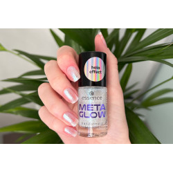 Vous recherchez un top coat qui transforme vos ongles en une œuvre d'art à couper le souffle ? Alors le top coat transformant essence META GLOW est votre complice ! Ses reflets duochrome semi-transparents argentés et bleus sont inspirés du Metaverse et son effet instantané attire le regard sur chaque vernis à ongles. 100% TikTokable ! Ce top coat révolutionnaire s'adapte à toutes les humeurs, occasions ou styles personnels : testez dès maintenant le top coat transformant essence META GLOW sur vos ongles !