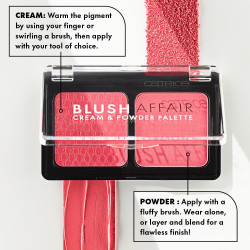 La palette crème et poudre Blush Affair de Catrice offre le meilleur de deux mondes : un blush à la texture crémeuse et une poudre douce et veloutée. Elles sont toutes deux très pigmentées, vous n'avez donc besoin d'en utiliser que de petites quantités pour un fini parfait.