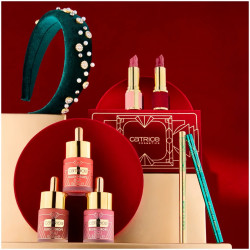 Pour des lèvres ultra brillantes, les rouges à lèvres hydratants Catrice FESTIVE TREASURES C01 Merry Kissmas ! et C02 Kissberry sont parfaits. Vous avez le choix entre un rose facile à porter et un rouge foncé. Les deux nuances feront scintiller vos lèvres. Pour des lèvres hydratées et un fini brillant. Proposé dans un superbe étui en velours orné de touches dorées.