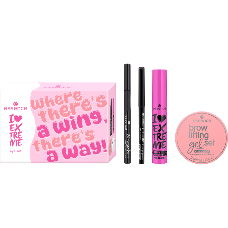 Boostez le volume, dessinez vos cils et rehaussez vos sourcils avec le coffret pour les yeux I Love Extreme 01 Wing It ! Ce coffret tout-en-un comprend quatre must-have : le mascara volume I LOVE EXTREME crazy volume pour des cils audacieux, le crayon yeux LONG LASTING 01 pour une définition parfaite, l’eyeliner 24ever 01 pour tracer des virgules avec précision et le gel pour rehausser et fixer vos sourcils. Le coffret vous permet de créer un maquillage naturel pour tous les jours, ou plus spectaculaire.