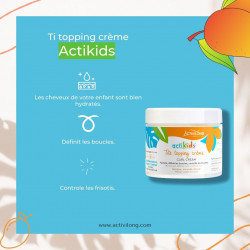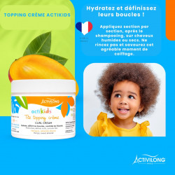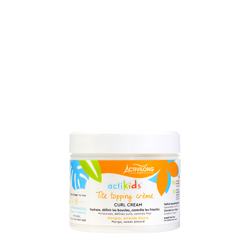 Enrichie en huile d'amande douce bio et en beurre de mangue, cette crème fondante et légère sculpte et redéfinit les boucles de votre enfant avec une tenue longue durée, une douceur et une hydratation en profondeur.