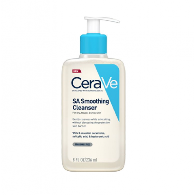 CeraVe SA Nettoyant Lissant pour le visage et le corps. Ce nettoyant aide à atténuer la texture de la peau rugueuse et bosselée, laissant la peau plus lisse. L'acide salicylique contenu dans la formule exfolie la peau en douceur, sans compromettre la barrière naturelle de la peau. Développé avec des dermatologues, ce nettoyant moussant quotidien aide à protéger la barrière naturelle de la peau avec trois céramides essentiels et hydrate la peau avec de l'acide hyaluronique.