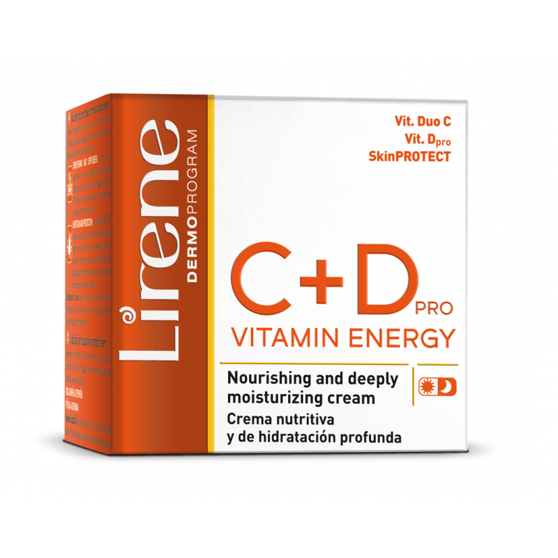 Lirene C+D pro Vitamine Energy – Soin hydratant nourrissant. Complexe unique de vitamine Duo C combiné avec du vital. D PRO contribue à la protection de la jeunesse de la peau : Éclairage et élasticité : la vitamine Duo C travaille revitalisant et éclaircissant. La vitamine Dpro soutient la barrière protectrice de l'épiderme et renforce la régénération des dommages. La peau est radieuse, ferme et élastique.